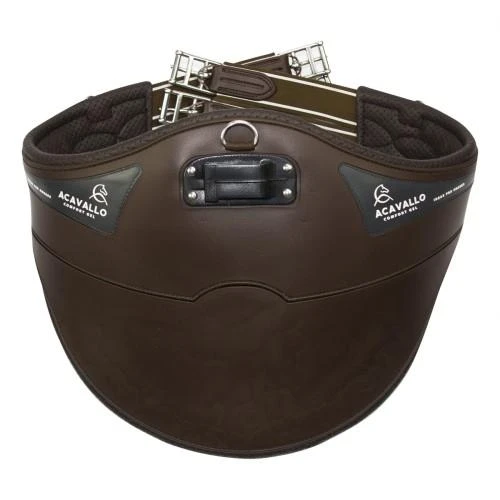 A more streamline version of the Stud Girth contoured to fit round the elbow and maximise freedom of movement. This comfort girth is made from composite material & soft eco leather. Eliminates pinching & relieves pressure on the abdomen enabling a tight close fitting girth without discomfort. A sophisticated airflow pattern is created by the individual shock absorbing gel pad elements. This improves flexion, breathability and reduces sweat build up. A patented Acavallo® safety fastening hook is designed to eliminate need for additional snap hooks for martingales & draw reins creating a smooth safe connection