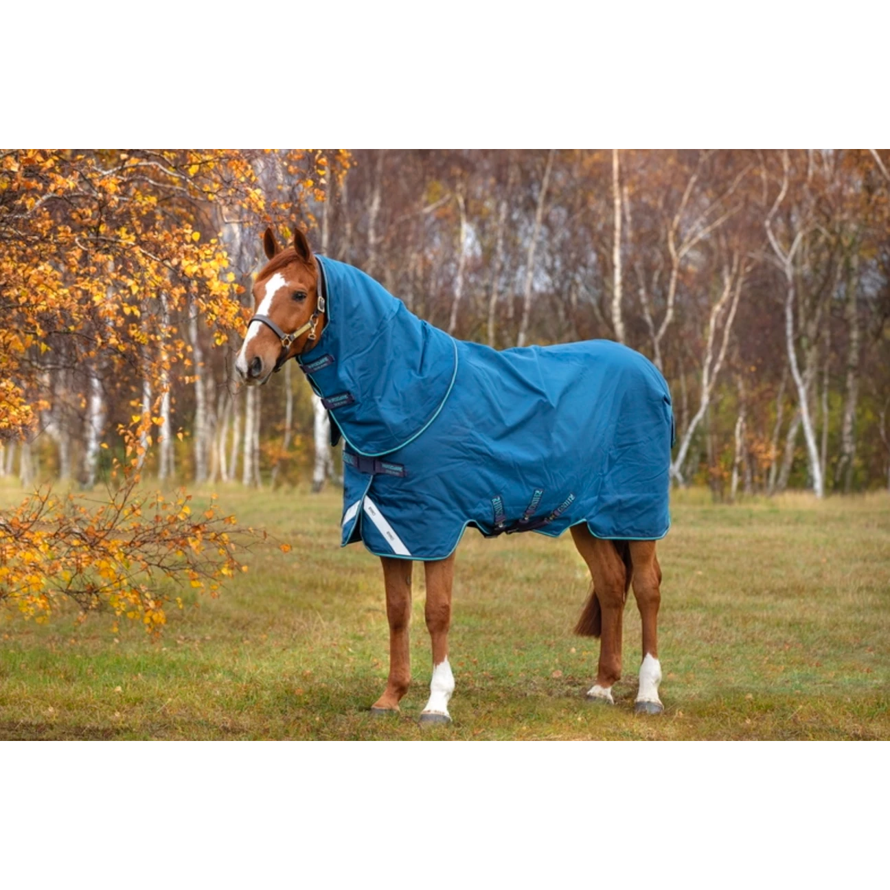 Patented ‘V’ front closure, Surefit neck design, neck cover included and includes loops to add a Horseware Liner for layering.
