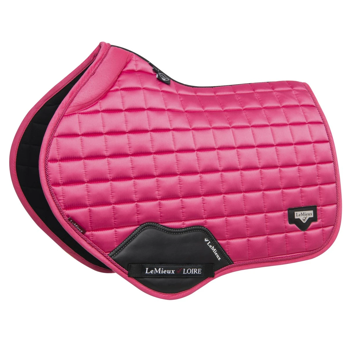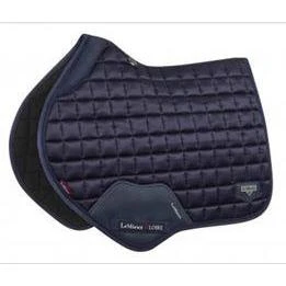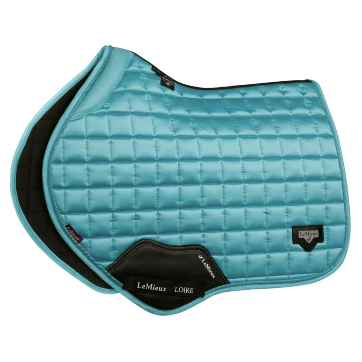A range with a spirit of sophistication and class – showing style without showing off! Woven satin fabric gives a beautiful sheen to these pads whilst a soft memory foam suede collar supports the front of the saddle adding stability. The Textured leather girth protection area is complimented by an embossed metal motif.