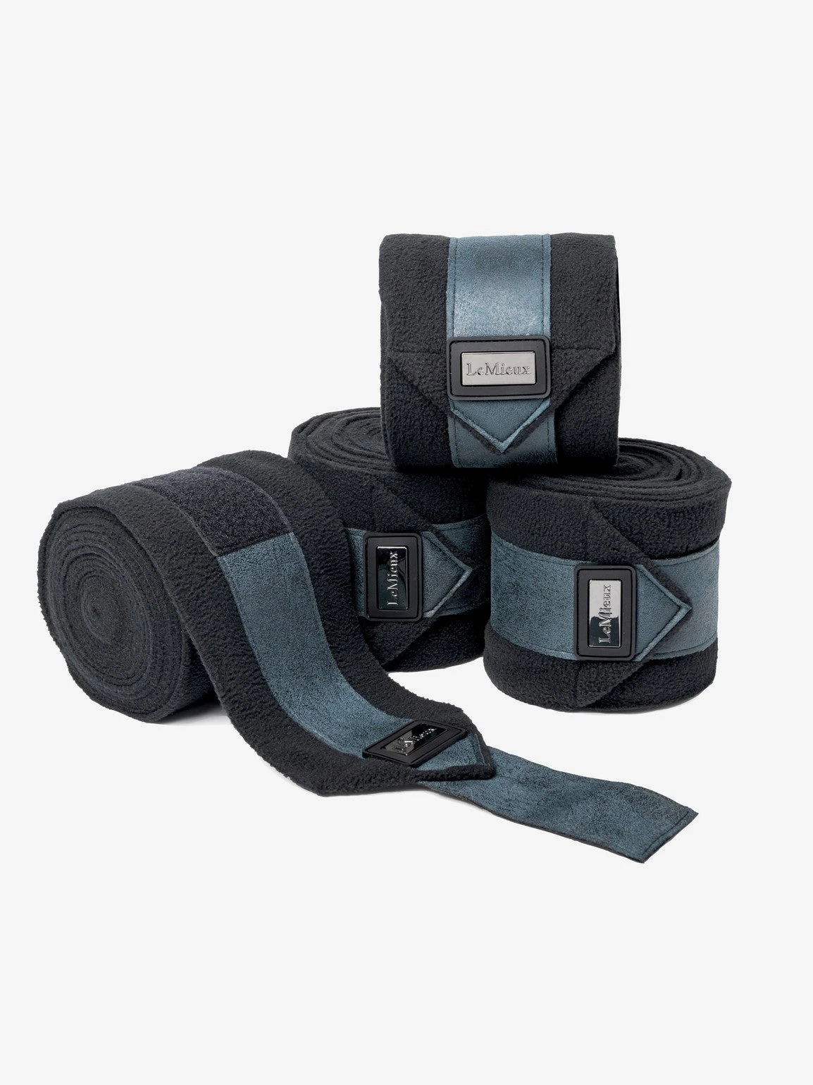 These beautiful fleece polo bandages have an antique suede effect end-detail that gives a subtle mottled look, and are finished with a gunmetal LeMieux embossed motif
