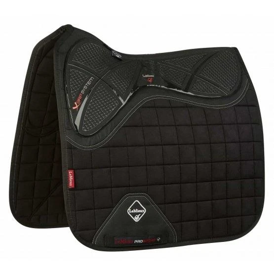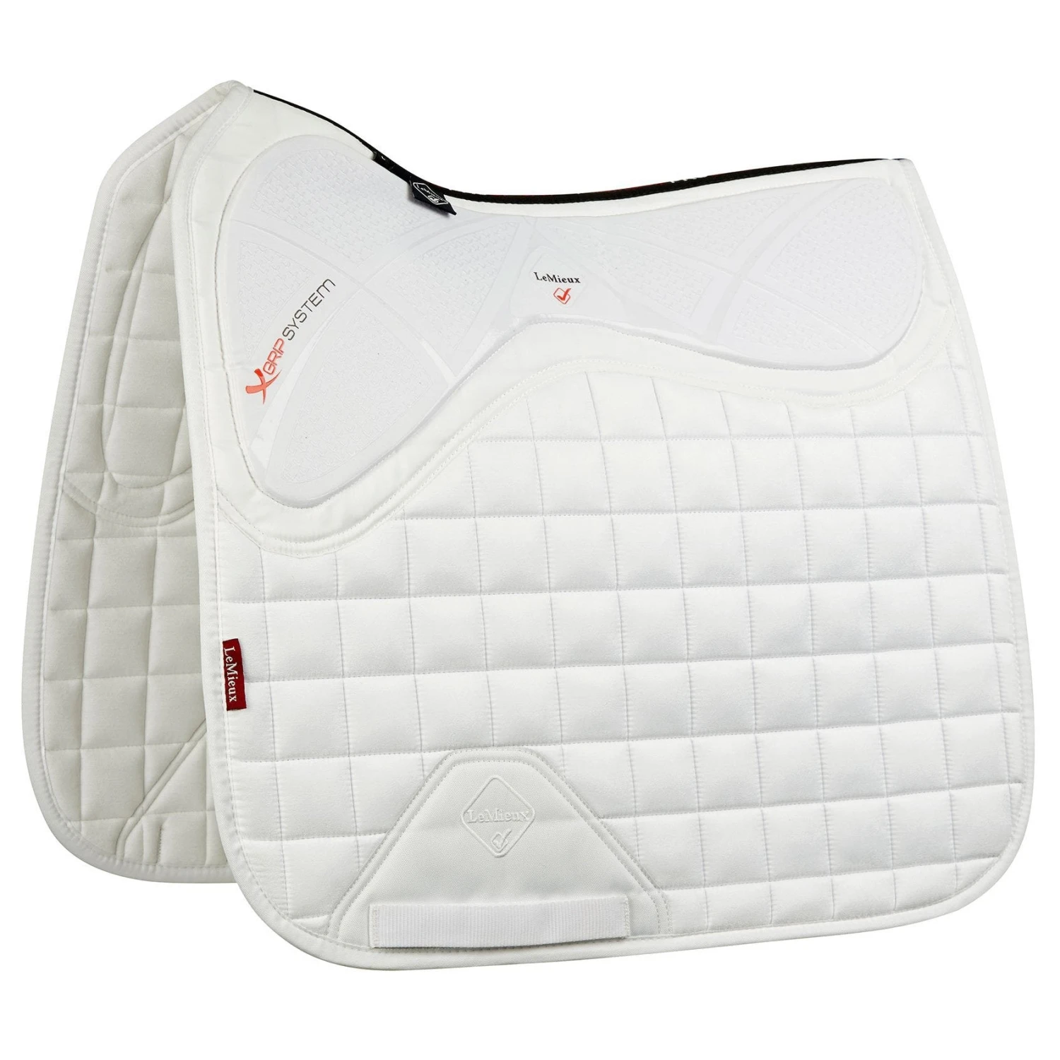 The X-Grip Dressage square combines the stylish, iconic LeMieux cut with the new X-Grip silicone design to ensure saddle stability and grip. The Memory Foam under the saddle area aids with comfort and shock absorbency. The unique blast foam core has been through a process where hot air is forced through the memory foam under pressure to create the extremely breathable yet supportive and lightweight perforated material.