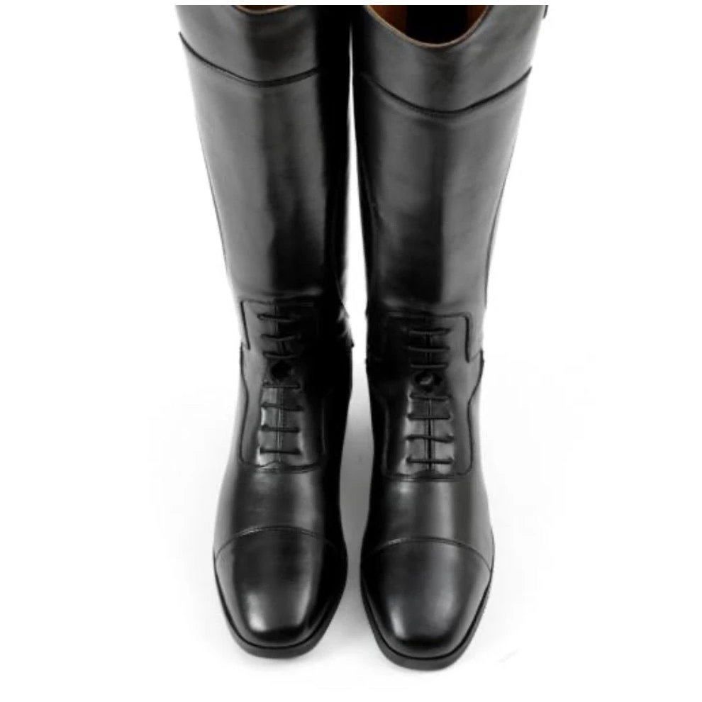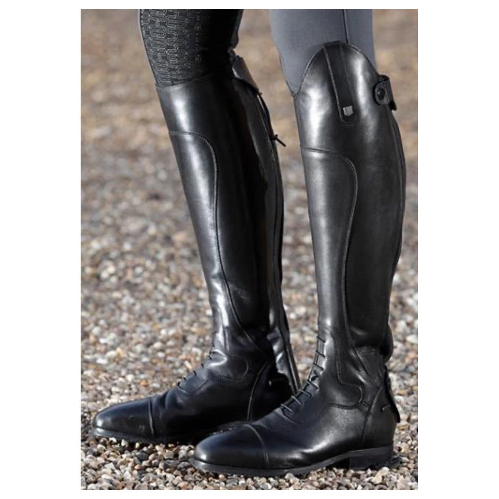 Wearer trial comments:“These riding boots are just gorgeous. I wear them for training and for shows, they’re comfortable for all day use and really soft allowing you to keep your heel positioned where it is meant to be. The fluid style line on the boots give them a premium look and they feature two point spur rests and a press stud spur guard, making them great for if you wear spurs. The raised outer let makes my silhouette look elongated and the discreet elastic panel running parallel with the zip gives the perfect fit. I have the brown version and the contrasting leathers really highlight the elastic laces, making them look and feel really expensive, with a pleasantly surprising price tag. I’m even thinking of getting a second set to keep for best!”