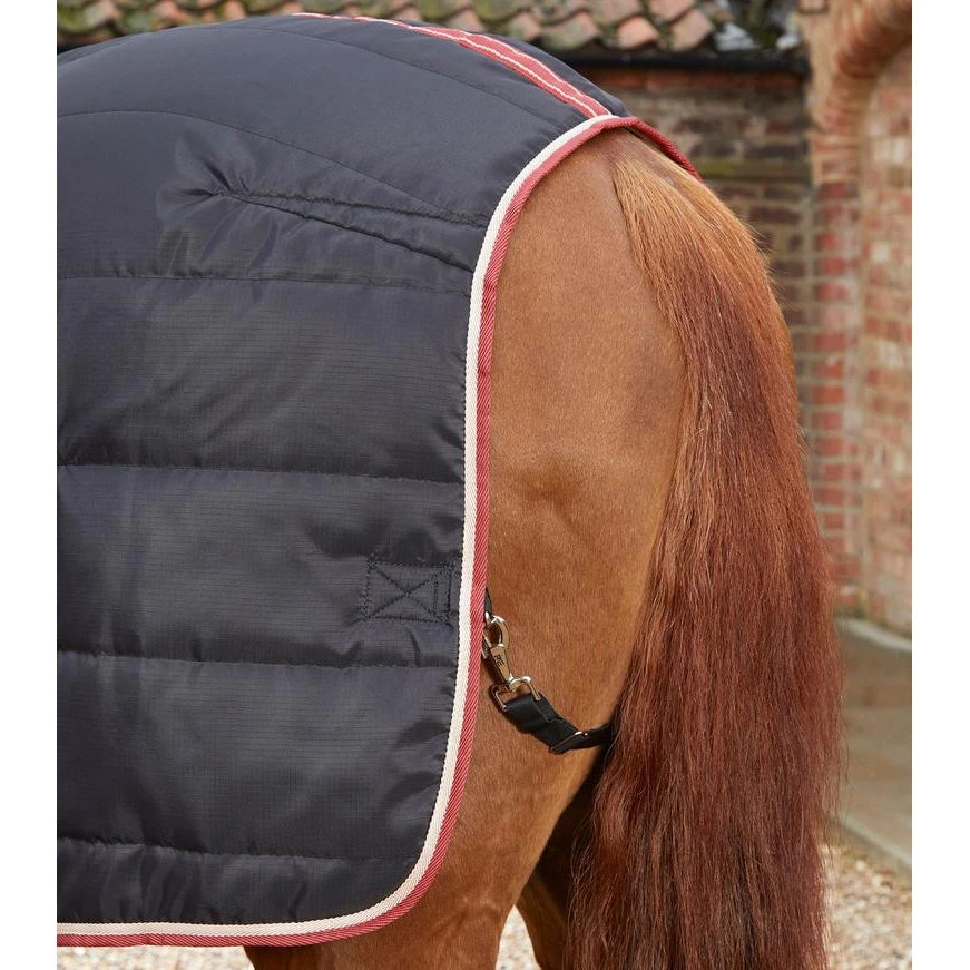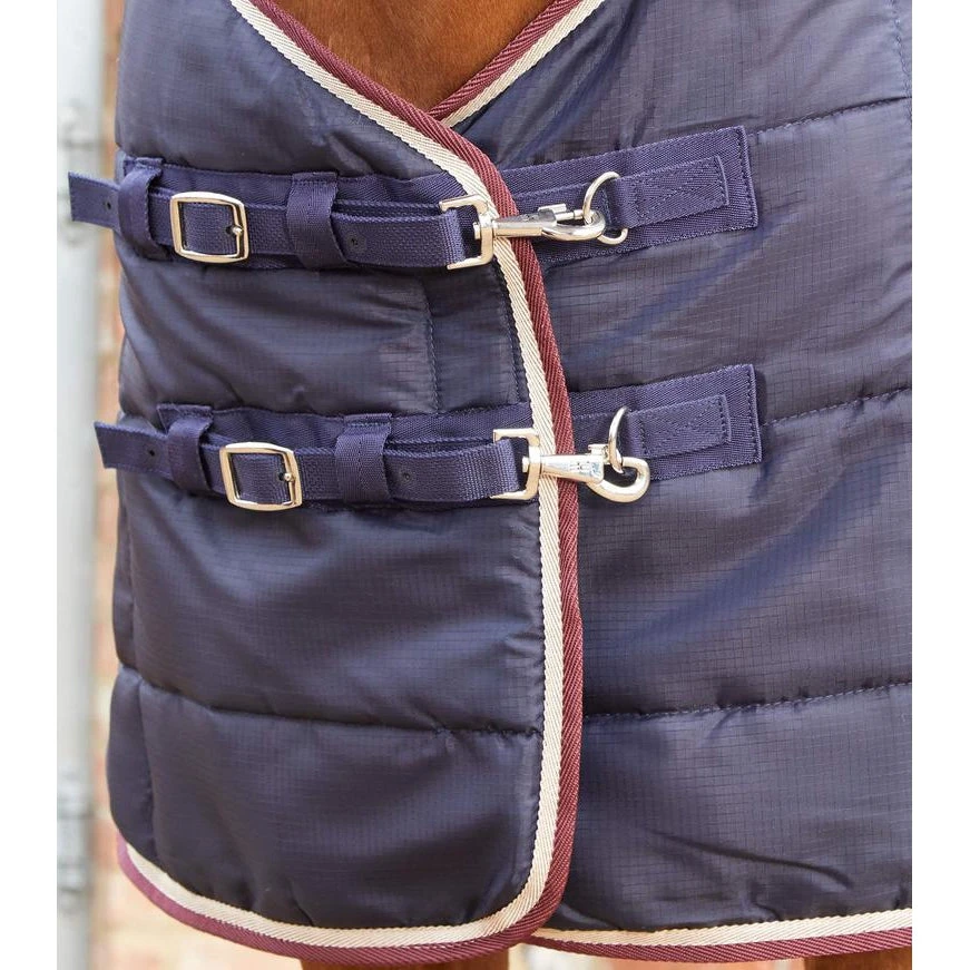 A high quality stable rug which provides excellent protection has been crafted in a breathable 420D ripstop polyester which acts as a barrier to your horse’s coat to repel dust, dirt and stains. The technical thermo bonded fill helps to regulate your horse’s temperature, delivering comfort, protection and warmth when needed. The quilting of the fabric layers gives this rug a cosy aesthetic and an extra high shoulder gusset allows for a greater range of movement at the shoulder. Anti-static polyester lining helps to prevent rubbing and is comfortable against your horse’s skin. Complete with quick release chest clips and cross surcingles, this stable rug is a must-have for milder months.