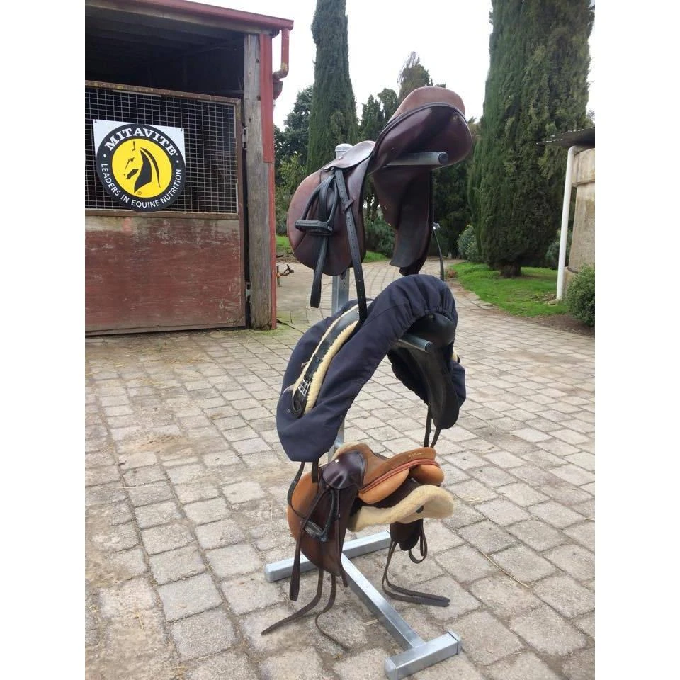 Saddle stand to store 4 saddles comfortably, made of galvanised steel so they will never rust out. Lightweight and easy to manoeuvre.